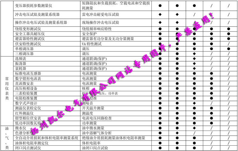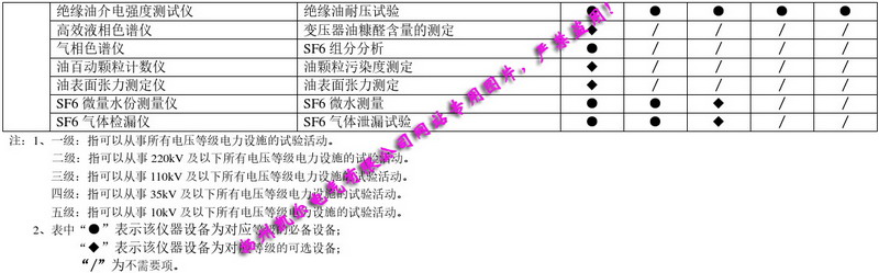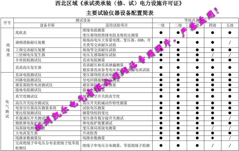 西北區(qū)域《承試類承裝(修、試)電力設(shè)施許可證》主要試驗(yàn)儀器設(shè)備配置簡表